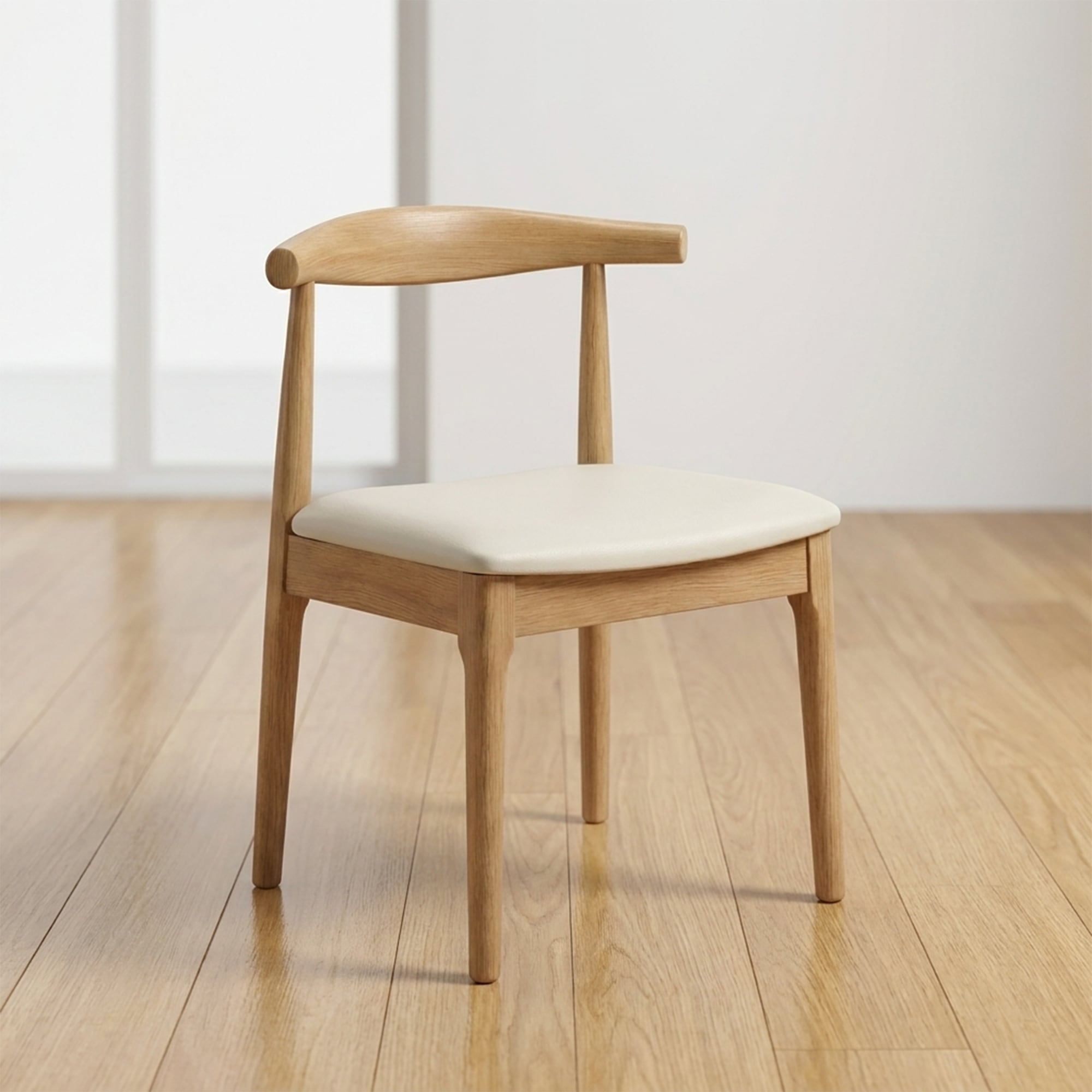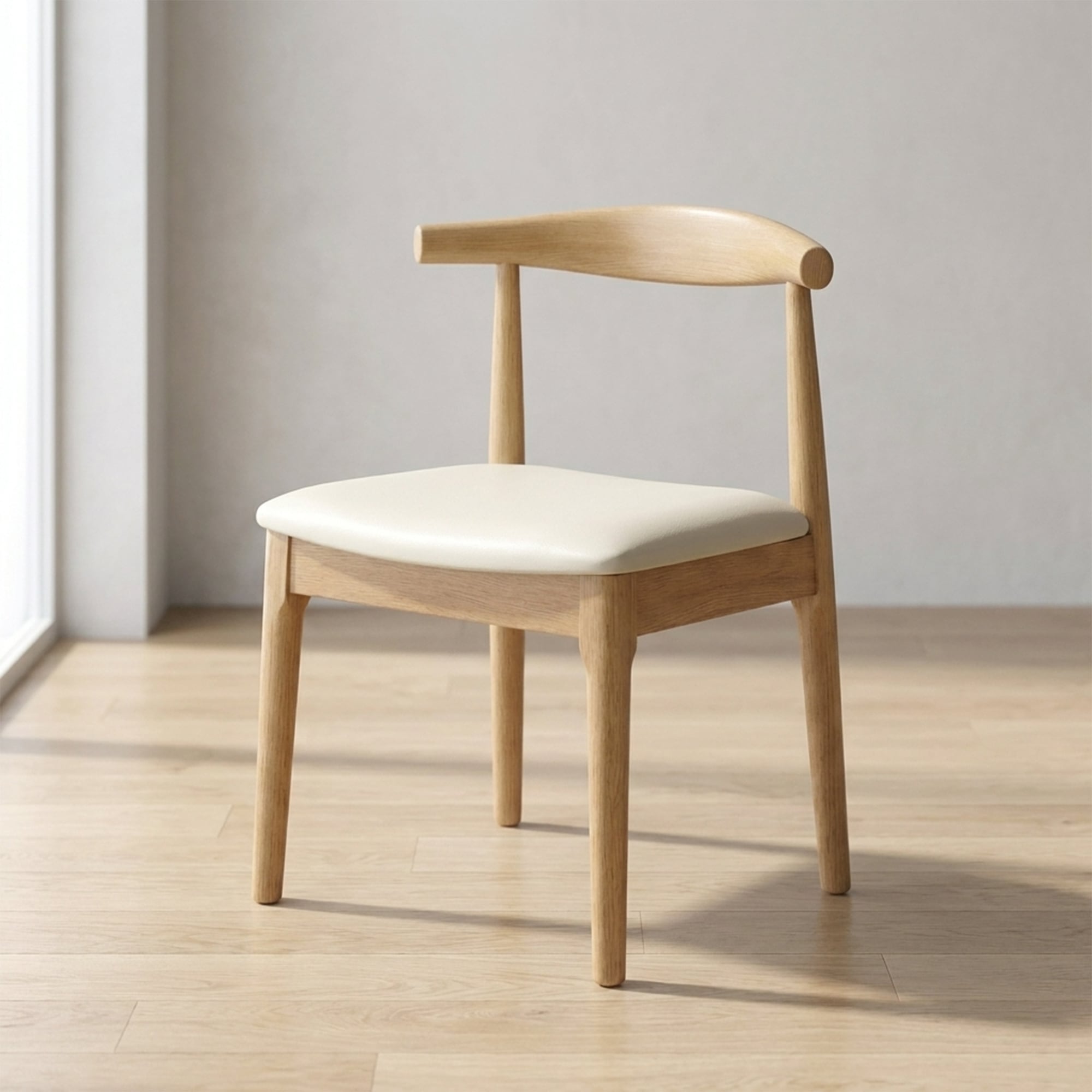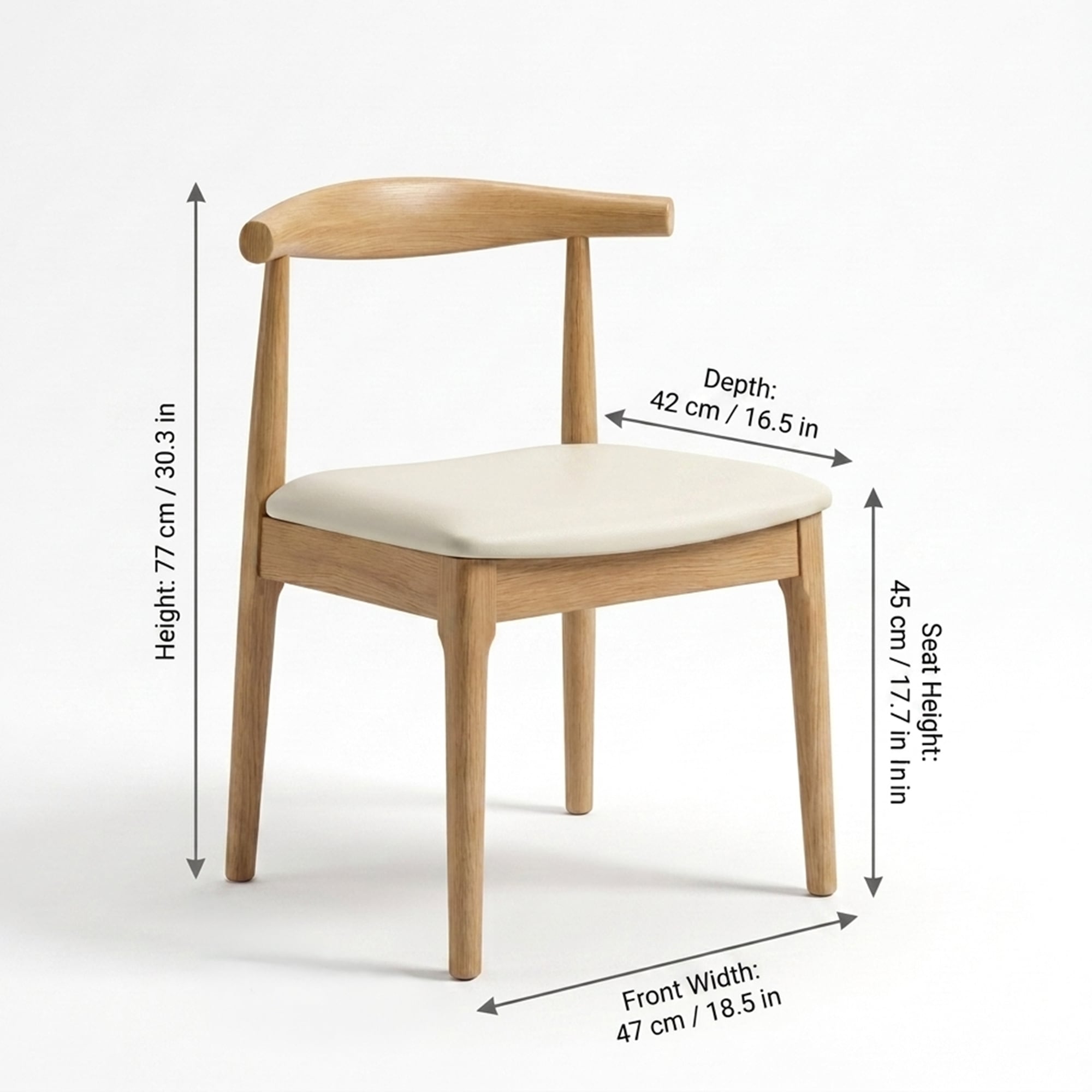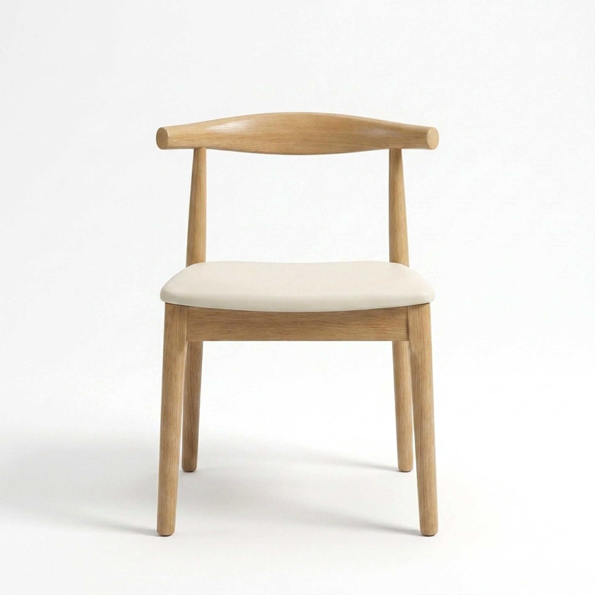 The Luma Oak Wood Dining Chair rests on solid oak legs with a modern silhouette that feels both grounded and refined. Upholstered in smooth vegan leather, it pairs warm ivory tones with a natural wood finish for effortless contrast. Sculptural, sturdy, and thoughtfully designed to elevate everyday dining.